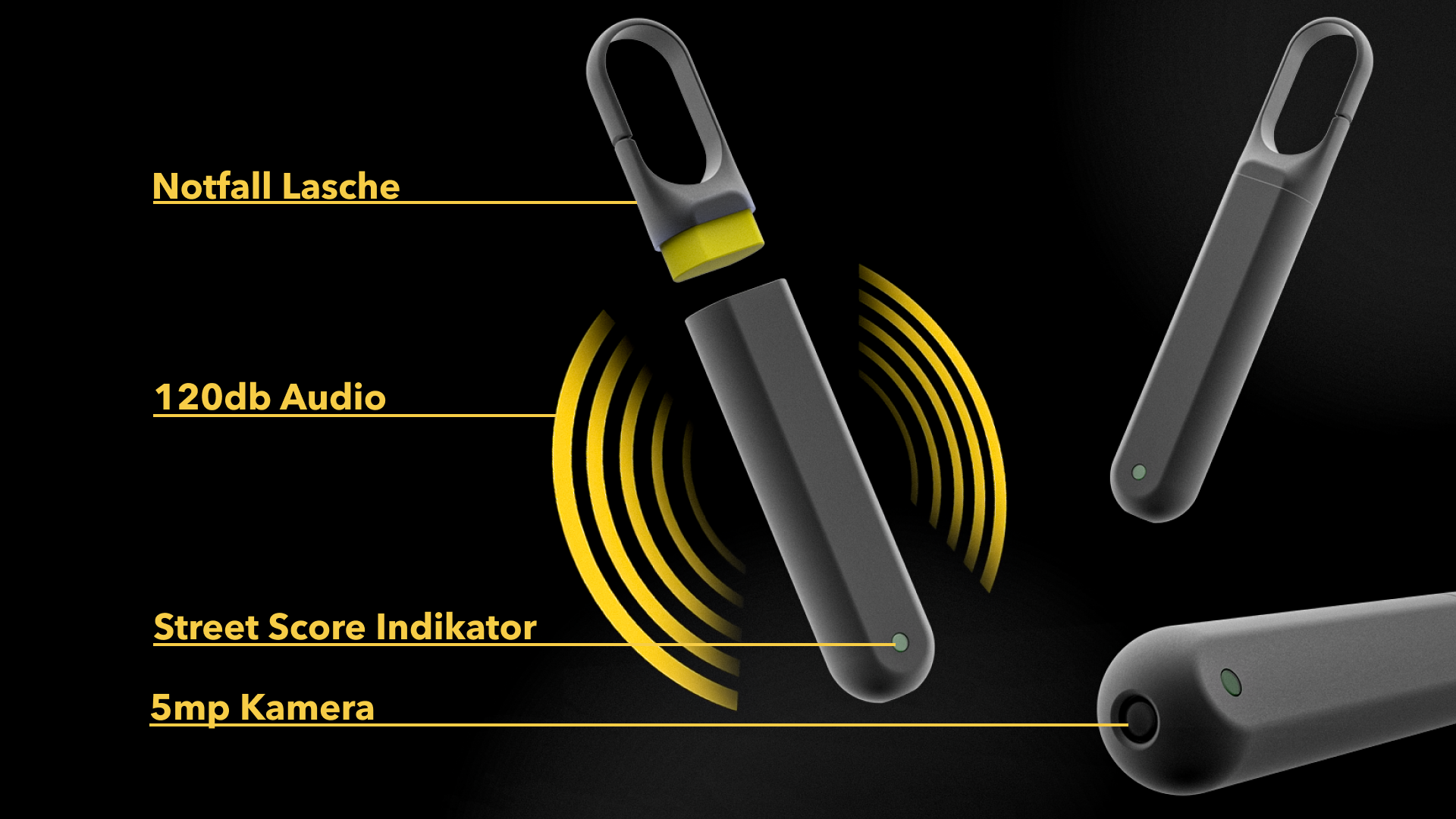 Ein Alarmton macht Angreifern deutlich, dass Sicherheitskräfte unterwegs sind, und fordert Menschen in der Umgebung auf, sich solidarisch zu zeigen und Unterstützung zu leisten. Die integrierte Kamera im sicher.tag zeichnet Bilder auf, die zur Überführung des Täters genutzt werden können.