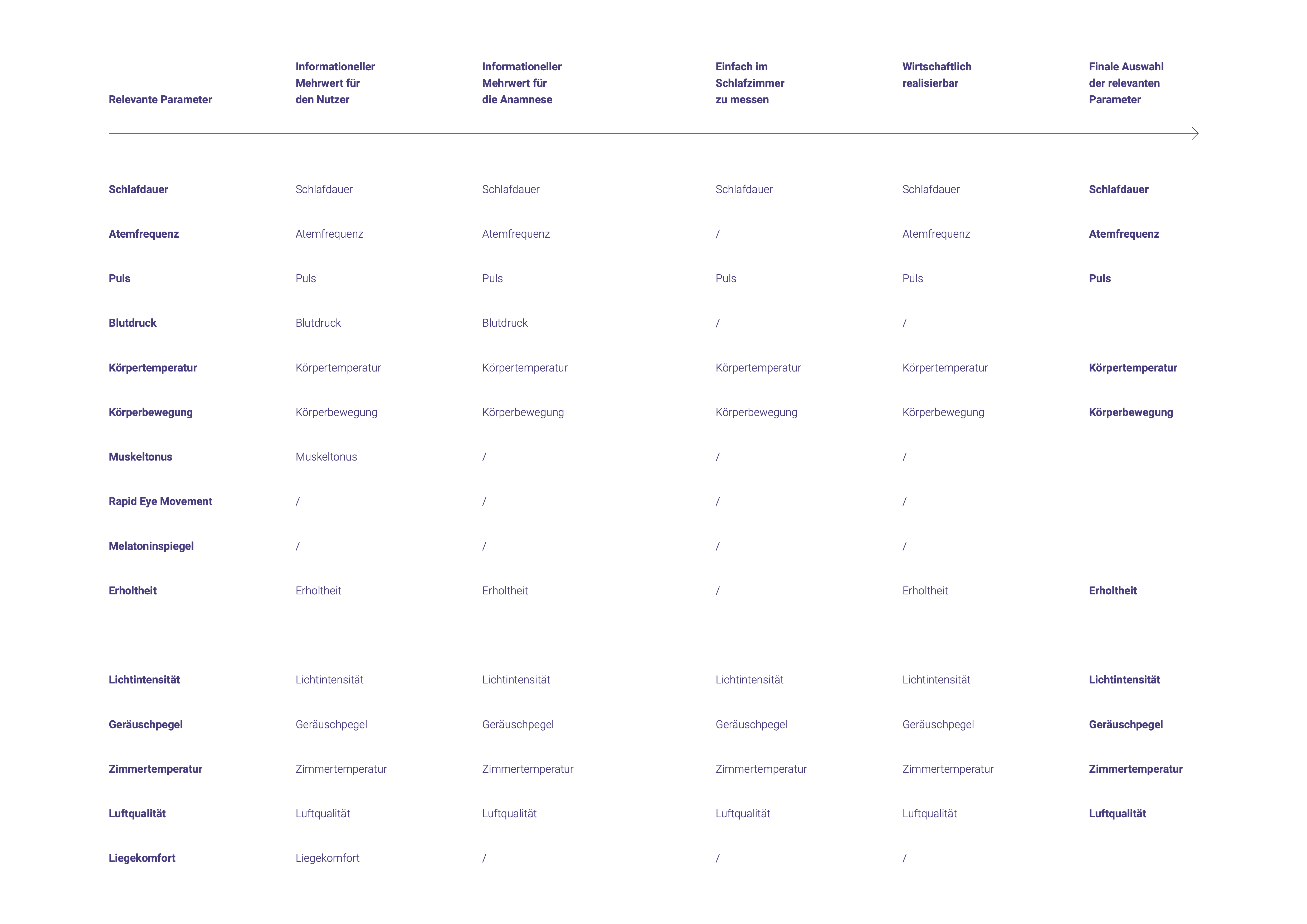 Therefore the awareness and the relevance for good sleep should change in the population. On the one hand, this requires education and the knowledge of one's own sleeping behavior, because people can only change their it if they know about the consequences and influencing factors. It is important to find out what the ideal sleeping conditions for different target groups look like and how people can be helped to understand their own sleeping behavior in order to be able to optimise it with the help of tips or suggestions. For this purpose we want to design a holistic system that not only takes care of sleep but also takes correlations from daily routines into account in order to provide the user with the most accurate information about his own sleep behavior. With the help of a clear and easy to use information platform and products that analyse sleep behavior we see the potential to positively influence the peoples` sleep.