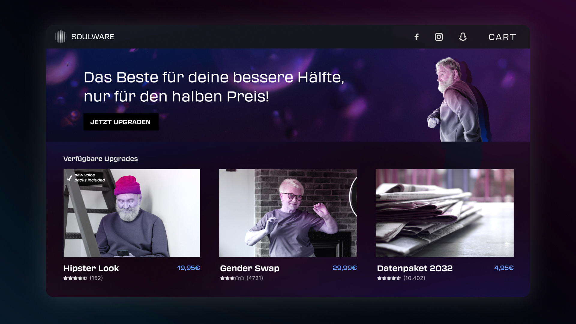 Although the SoulPod is based on real-life data, it can be dynamically adapted through upgrades. Such an upgrade can be, for example, a gender change to adapt the digital image to changing preferences or needs. Adding new outfits and look-ups can also improve the authenticity of the digital twin. Furthermore, an upgrade can also be used to keep the digital twin up to date. Here, current information can be added, for example, to be able to discuss current events.