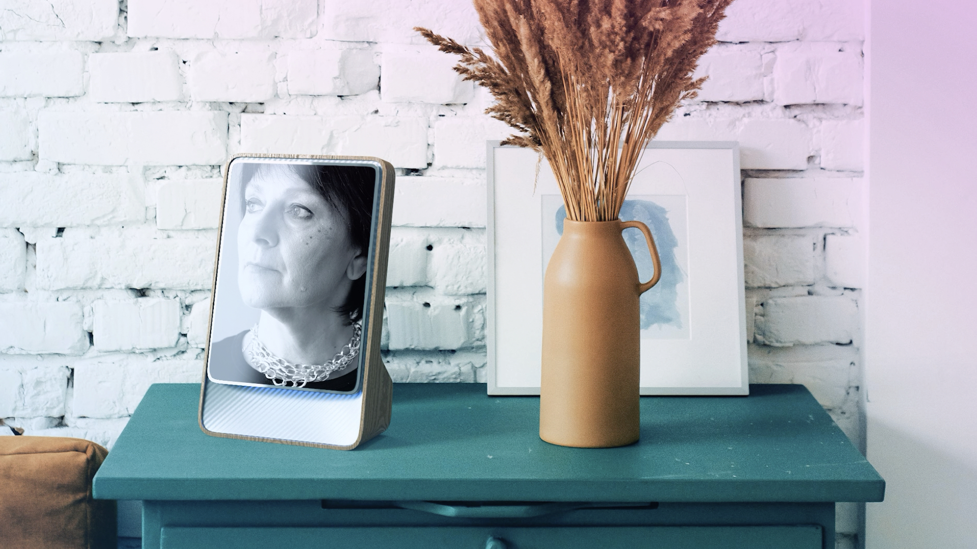 Until the year 2025, a person who lost a loved one had to try not to forget him. Long-past moments with deceased were recorded through pictures. This is what Soulware changed eight years ago. With SoulFrame, users are able to talk, interact with deceased people. In doing so, the e-Ink display presents a changing image of the person. This product was the first step for deceased digital twins into everyday life.