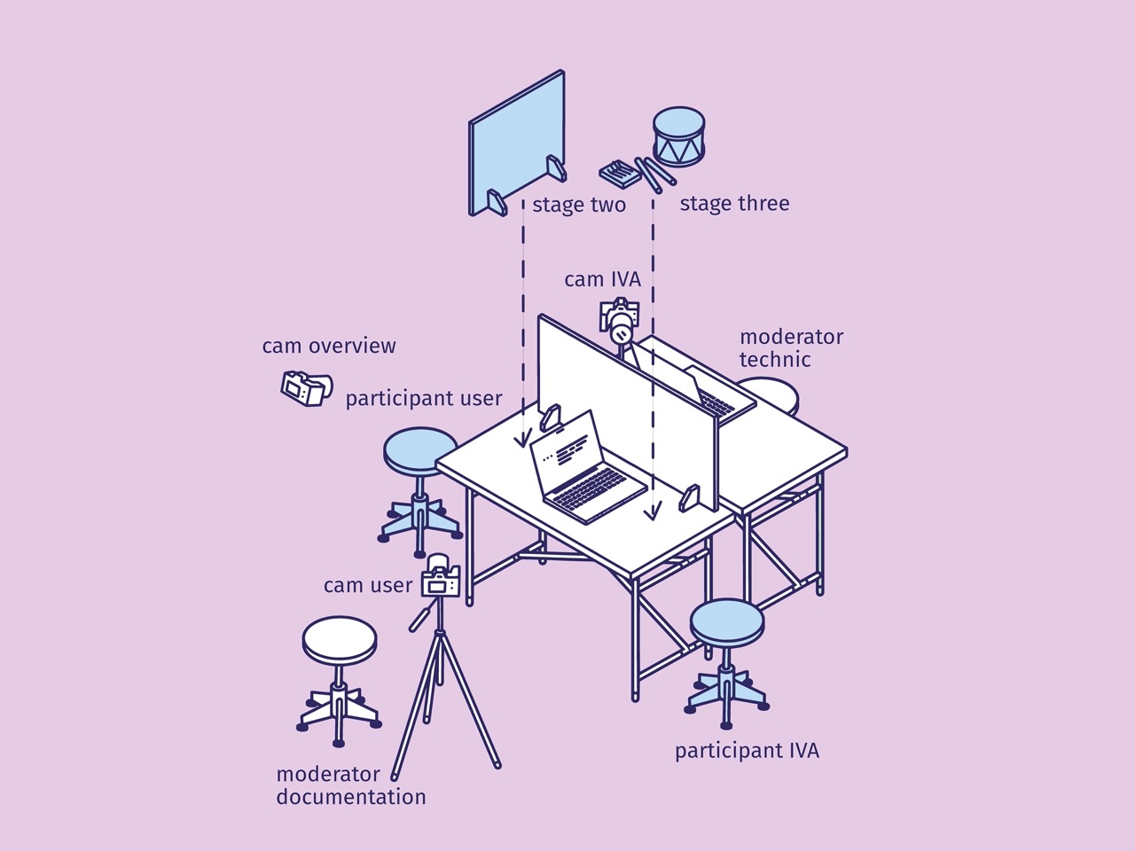 <3>Abschließend ist ein Konzeptentwurf für eine mobile Installation entstanden. Die Installation zielt darauf ab, den Menschen einen greifbaren Einblick in die zukünftigen Möglichkeiten und Entwicklungen mit intelligenten Sprachassistenzen zu bieten. Die Installation soll zeigen, dass sich in Zukunft unsichtbaren Benutzungsoberflächen selbst erklären. Es kann in unterschiedlichen Szenarien für etwas 15 bis 20 Minuten ein Gespräch mit IVA geführt werden. Dabei können erste Eindrücke und Erfahrungen gesammelt werden.
