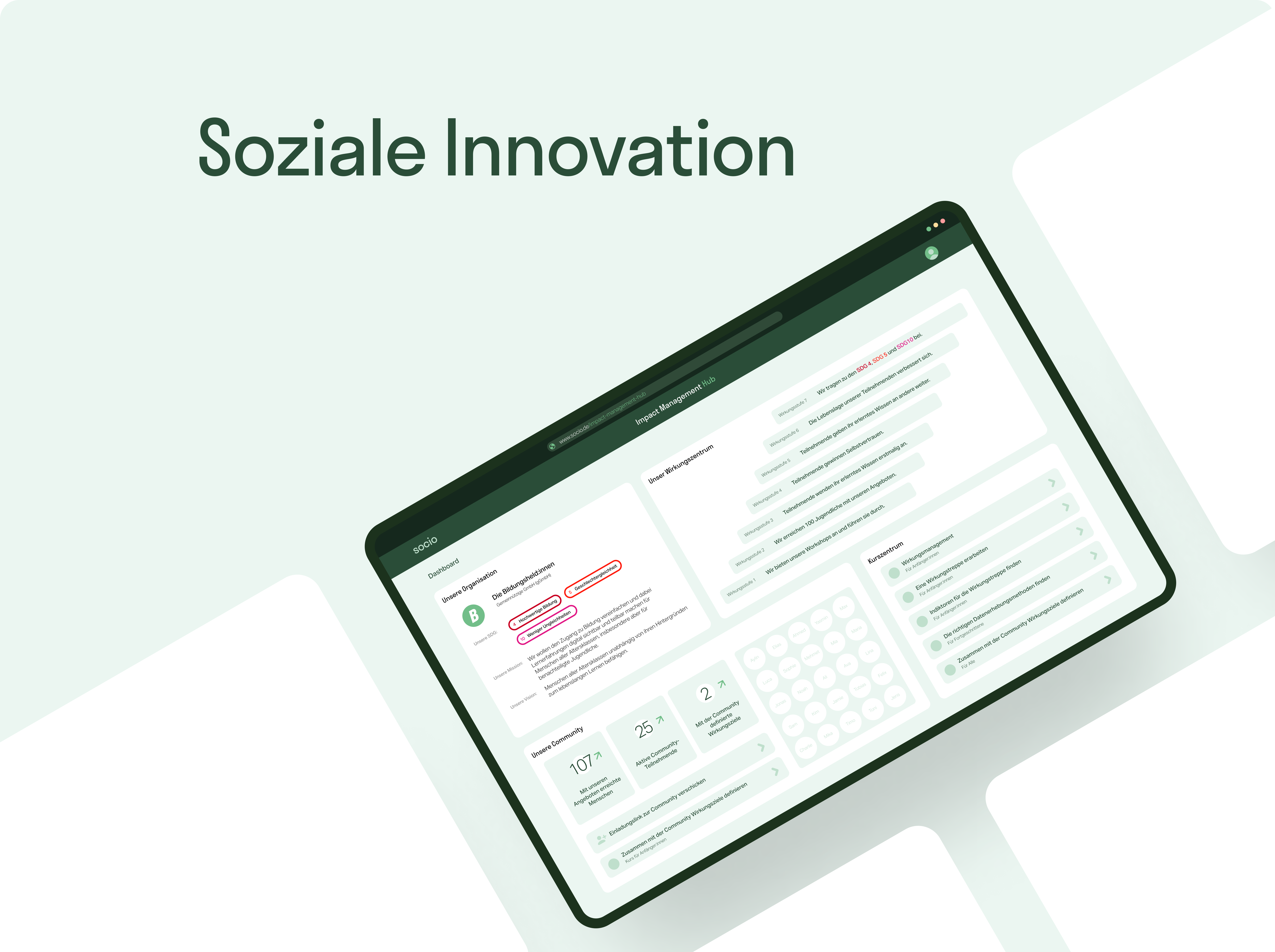 In Kooperation mit dem Fraunhofer Center for Responsible Research and Innovation (CeRRI) wurde ein digitales Wirkungsmanagement-Tool konzipiert – Das Impact Management Hub – das speziell auf die Bedürfnisse von Sozialunternehmer:innen zugeschnitten ist. Die Plattform ermöglicht es, Wirkungsziele partizipativ mit Zielgruppen zu definieren, relevante Wirkungs-Indikatoren datenbasiert zu erfassen und die Ergebnisse visuell aufzubereiten. Ziel ist es, die Kompetenz der Sozialunternehmer:innen im Bereich des Wirkungsmanagements zu stärken und die richtigen Weichen für das nachhaltige Bestehen ihrer Impact Startups zu ermöglichen.