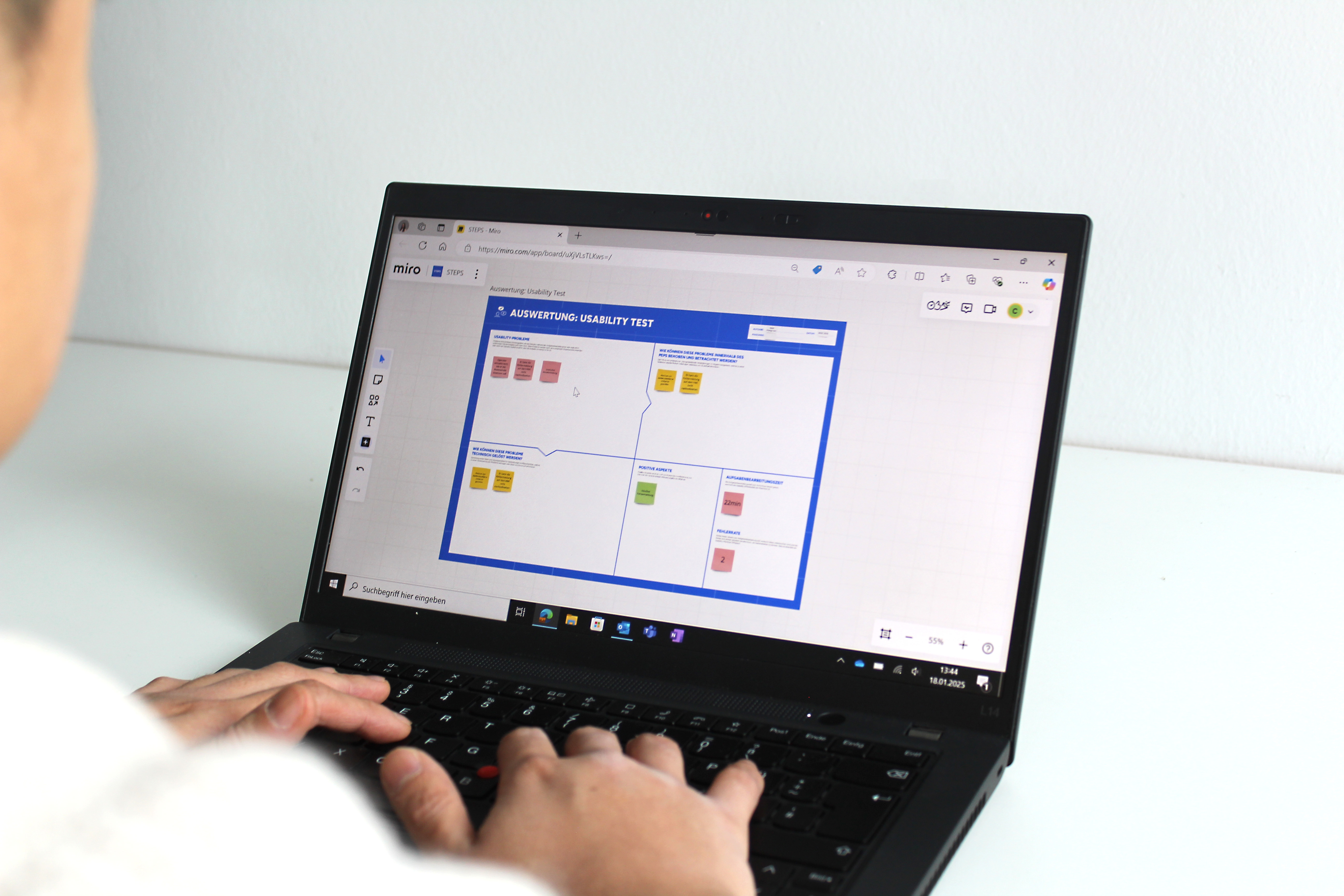 Anleitung über die Bearbeitung des BeobachterbogensAusfüllen des BeobachterbogensModerationsbogenDer Moderator notiert die Erkenntnisse aus dem Usability TestingMöglichkeit der Auswertung des Usability Testings auf Miro