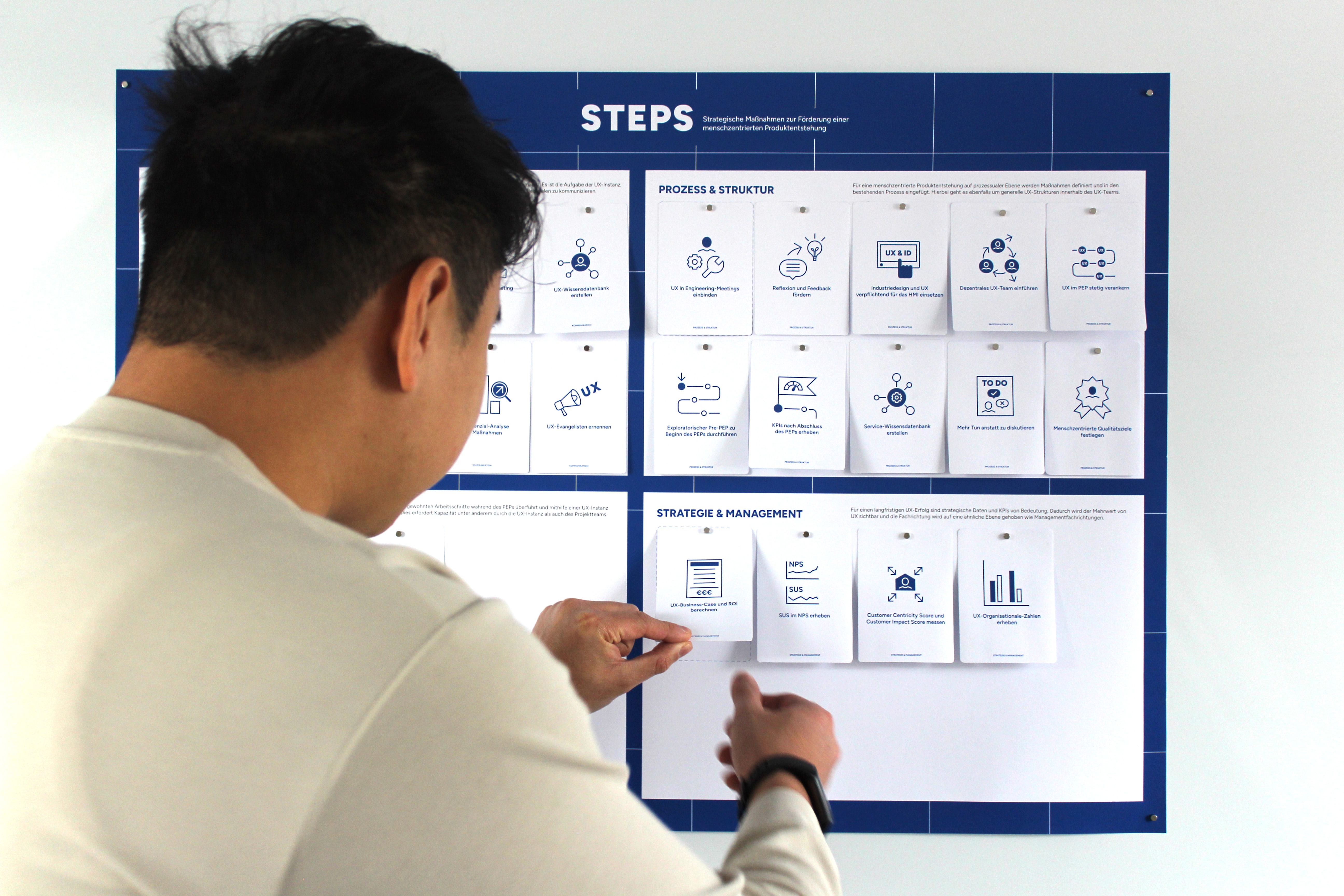Die Masterarbeit ‚STEPS‘ bietet strategische Maßnahmen, welche zur Förderung und Implementierung von UX im PEP beitragen.