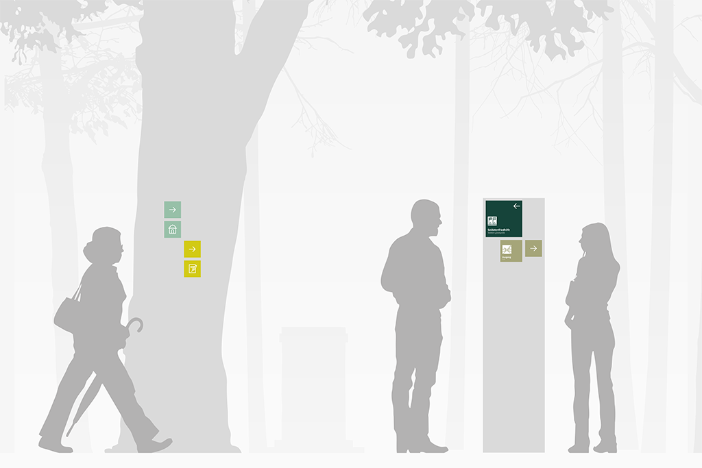 Aufbauend auf der konzipierten wegweisenden Signaletik, wurde im Rahmen der Arbeit ein zweisprachiges Informationskonzept entwickelt, welches die kulturelle und geschichtliche Bedeutung des Kirchhofs an BesucherInnen vermittelt. Digitale Wegfindungshilfen übernehmen hier eine zentrale Aufgabe und ergänzen die Orientierung, sowie vor allem die Informationsaufnahme mit neuen Details. Sie geben die Möglichkeit basierend auf vorgegebenen Wegkonzepten eigene Routen über das Gelände zu planen.