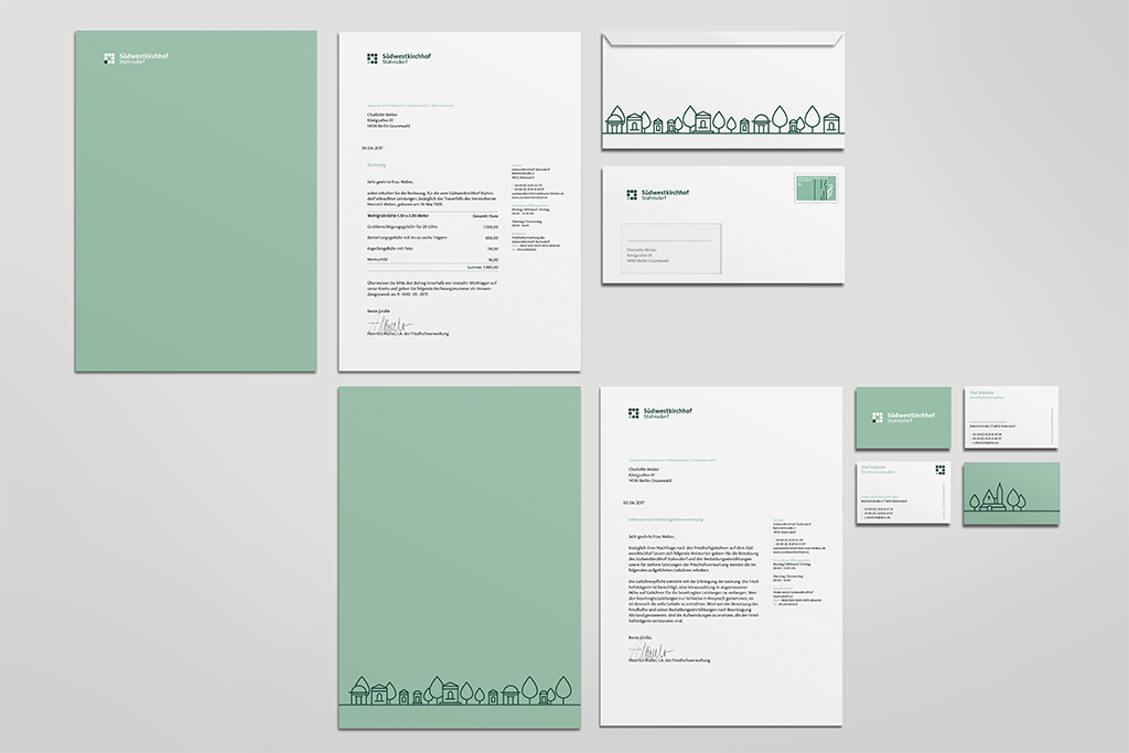 Ergänzend zu dieser digitalen wie analogen Neuausrichtung, wurde auch das grafische Erscheinungsbild des Kirchhofs überarbeitet. Der theoretische Teil der Arbeit befasst sich mit der Aufstellung wesentlicher gestalterischer Parameter für ein solches modulares System und evaluiert diese auf ihre Übertragbarkeit auf ähnliche Großanlagen.