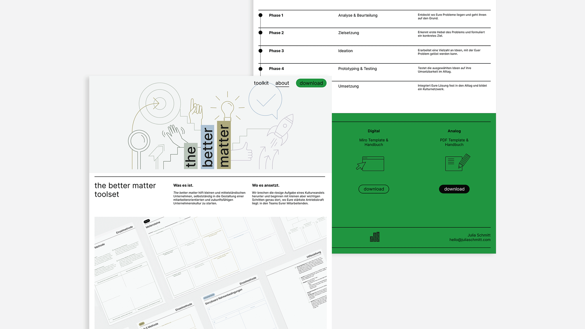 The goal of the better matter is to break down the huge task of culture change and to start with small but important steps exactly where a strong driving force of sustainable corporate culture lies: with the employees. For this purpose, a workshop format with accompanying materials was developed that small and medium-sized companies can use in their teams to promote an employee-oriented and agile development of their corporate culture.