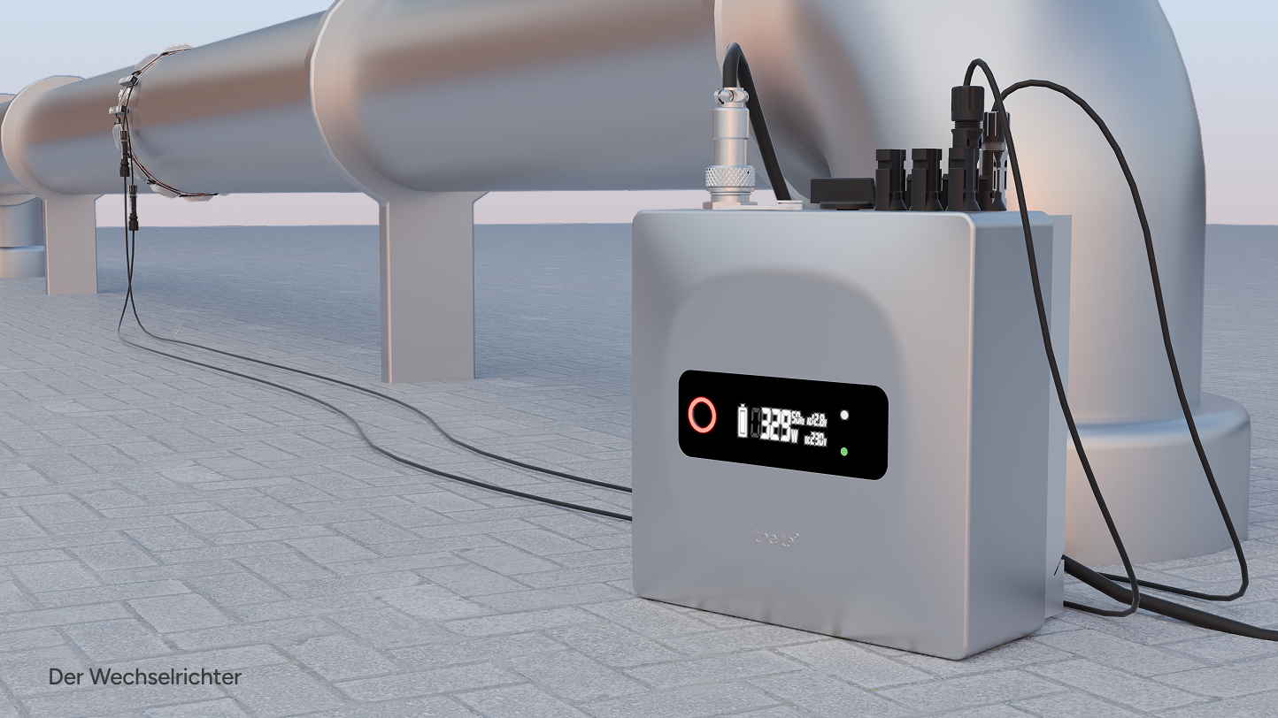 Aus mehreren thelta°- Modulen ergibt sich ein Ringelement. Dieses wird durch Rohrschellen an einem Abwärmerohr befestigt, um einen möglichst engen Kontakt zwischen den thermoelektrischen Generatoren und der warmen Oberfläche zu gewährleisten. Das System ist an unterschiedliche Durchmesser von Rohren anpassbar. Die Anzahl der parallel geschalteten Ring-Elemente kann vom Benutzer entsprechend der Länge der Rohrleitung selbst bestimmt werden.