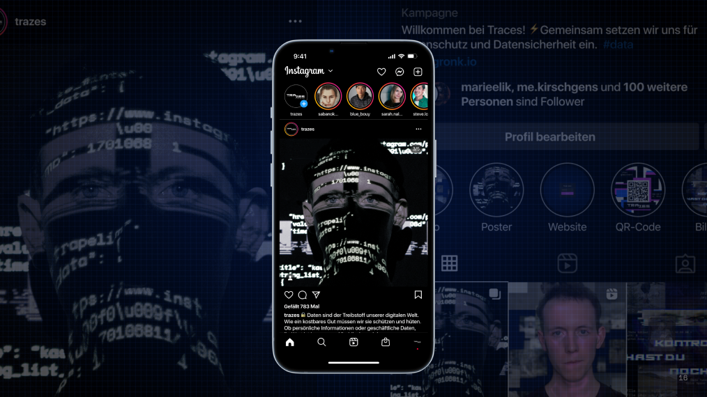 Der »TRAZES« Social-Media-Account wird zu einem zentralen Hub für die digitale Aufklärungskampagne. Hier wird aktiv mit der Community interagiert, Feedback gesammelt und Diskussionen über Datenschutz, Datensicherheit und Privatsphäre gefördert.