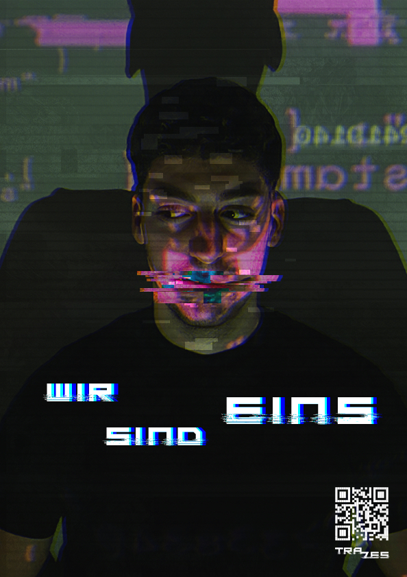 Wie das erste Plakat visualisiert auch dieses Plakat den digitalen Schatten, den wir mit unseren Daten erzeugen. Es erinnert uns daran, dass unsere digitale Präsenz nicht isoliert existiert, sondern eine nahtlose Verbindung zu unserem physischen Selbst bildet