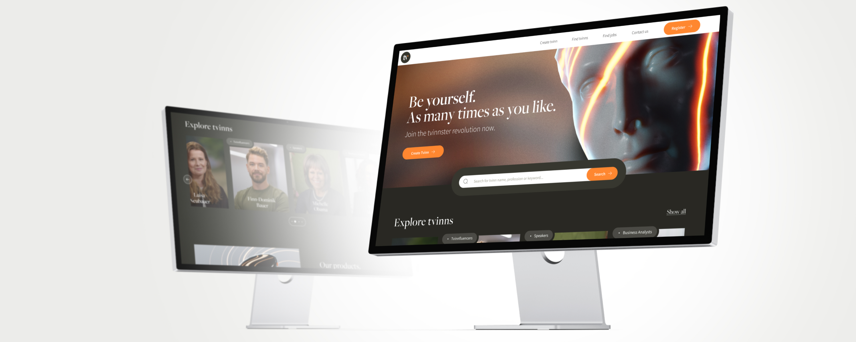 tvinnster is a fictional tech company that offers groundbreaking services and products based on artificial intelligence. Through highly individual machine learning models, tvinnster is the first company that enables users to digitize their own personality: The so-called tvinns. From now on, the possibilities are endless. No limits in the job market, outsourcing yourself and talking to experts from all over the world are just the tip of the iceberg of benefits that tvinnster offers.