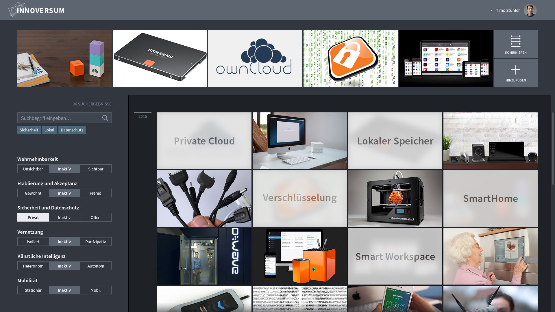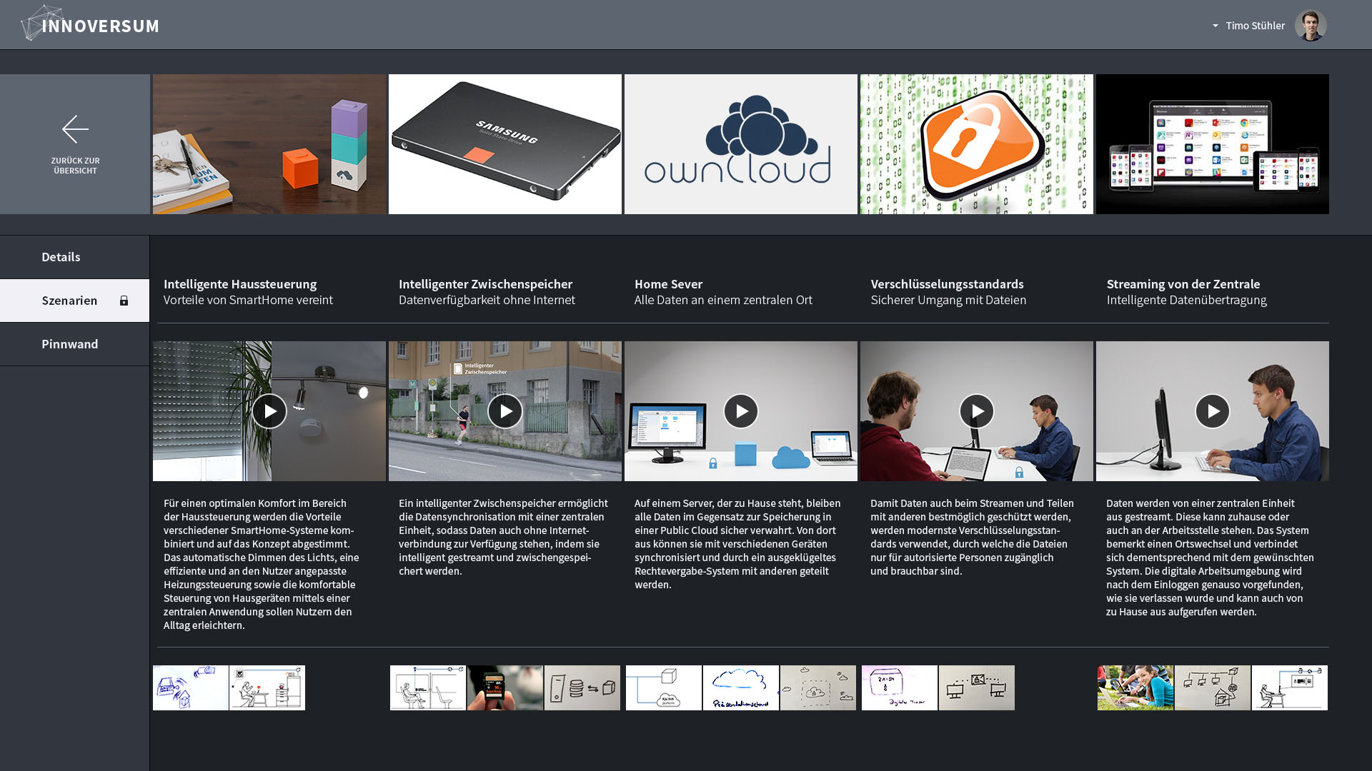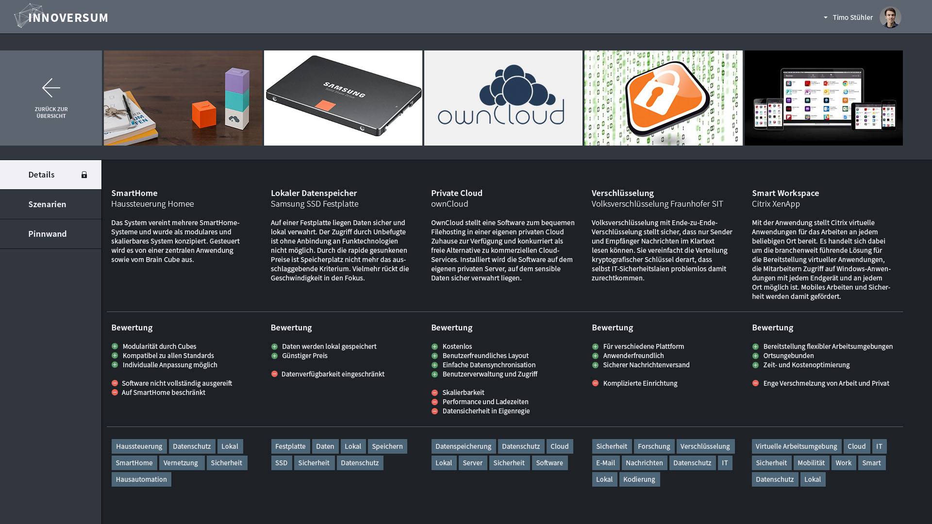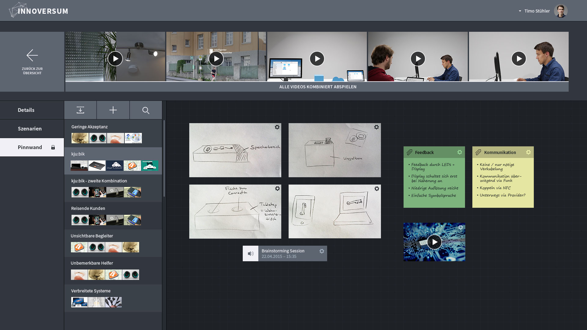 Daher wird das interaktive Werkzeug „Innoversum“ konzipiert, das Gestalter in komplexen Innovationsprozessen unterstützt. Die Software kann nach dem Abschluss dieser Arbeit weiter bestehen und im Prozess zunehmend komplexer Lösungsentwicklungen bei Gestaltern, Ingenieuren oder generell interessierten Personen als Hilfestellung dienen. Um die Funktionalität von „Innoversum“ zu überprüfen, werden für das Problem der Vernetzung drei Beispiellösungen konzipiert.