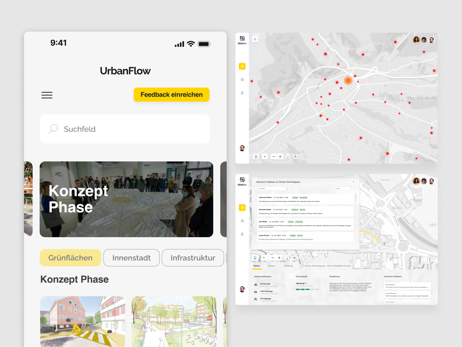 UrbanFlow ist unser innovativer Ansatz, der darauf abzielt, die Art und Weise, wie Städte ihre Infrastruktur und öffentlichen Räume gestalten, grundlegend zu transformieren. Durch die Nutzung fortschrittlicher Technologien und datenbasierter Lösungen bietet UrbanFlow Gemeinden ein mächtiges Werkzeug zur Visualisierung, Planung und Umsetzung effektiver Stadtentwicklungsmaßnahmen.