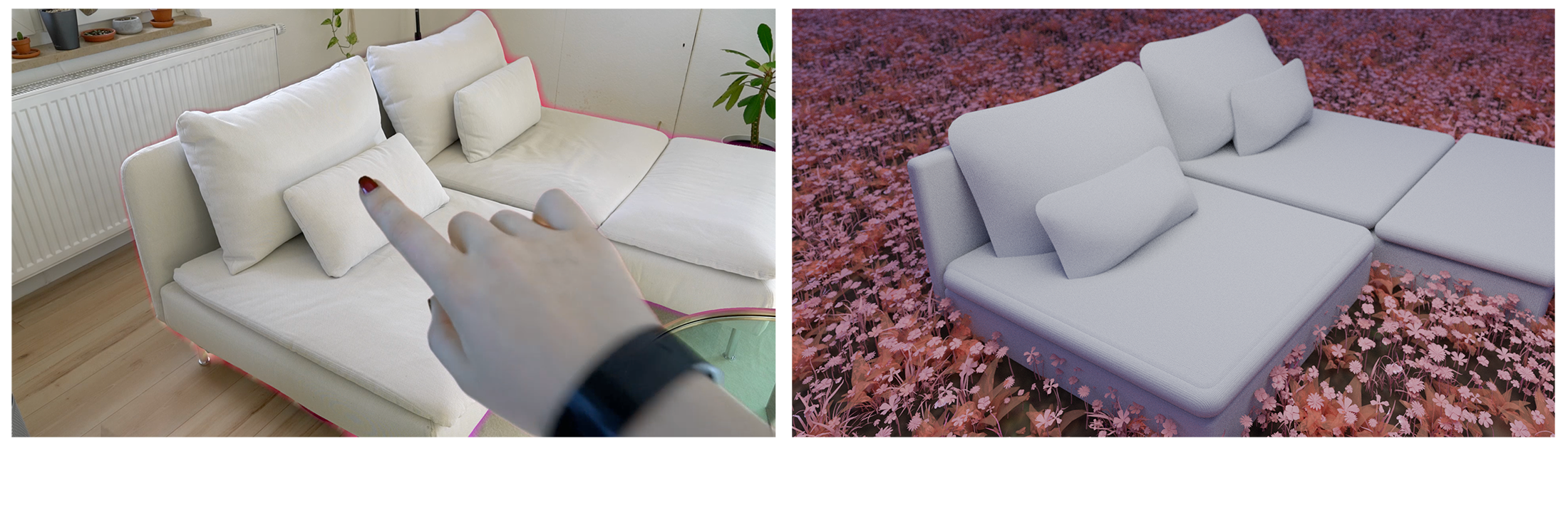 Um den Aufenthalt in VR interaktiver zu gestalten und die gesamte Experience zu verstärken, lassen sich reale Objekte in die virtuelle Welt einbringen. Durch das zeigen auf reale Objekte wie beispielsweise Einrichtungsgegenstände, kann man diese in die virtuelle Welt einbinden und im Anschluss mit ihnen interagieren.