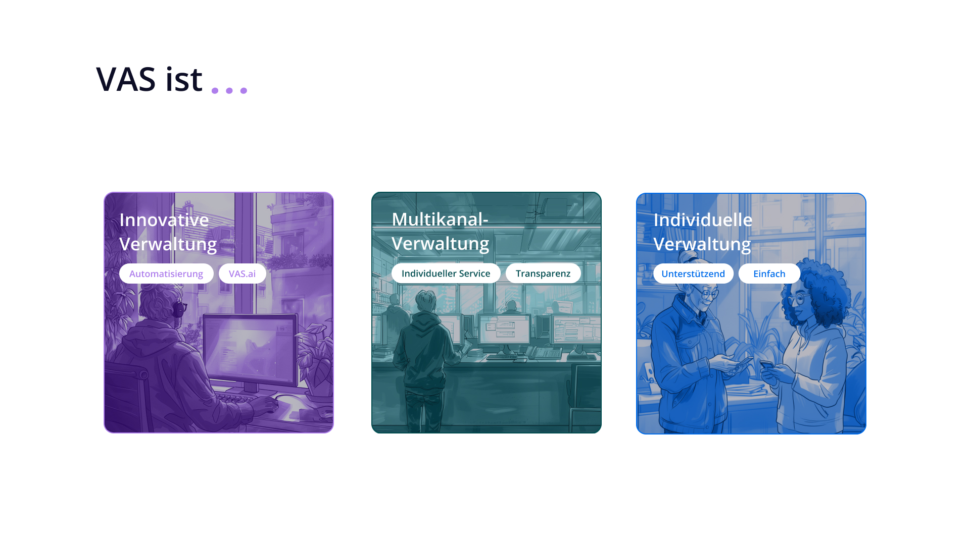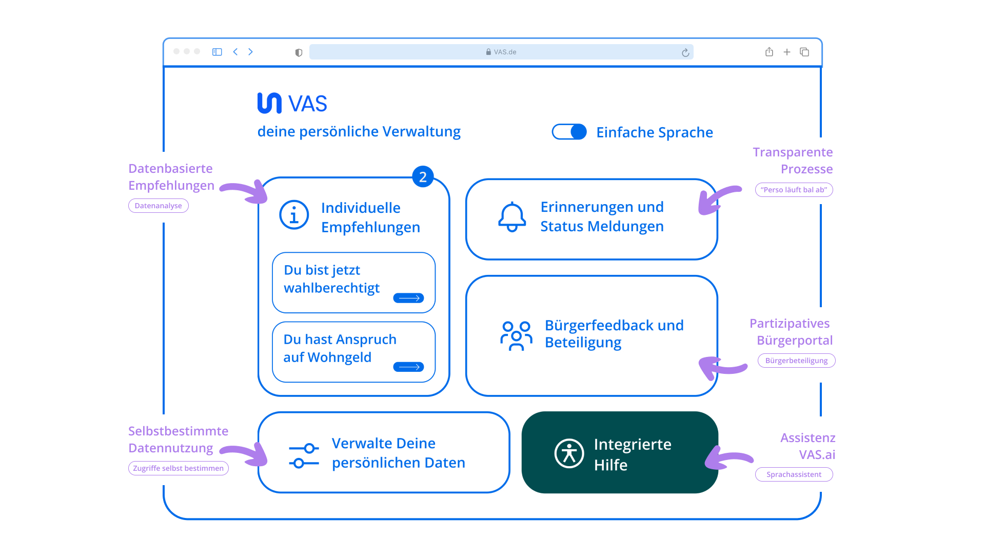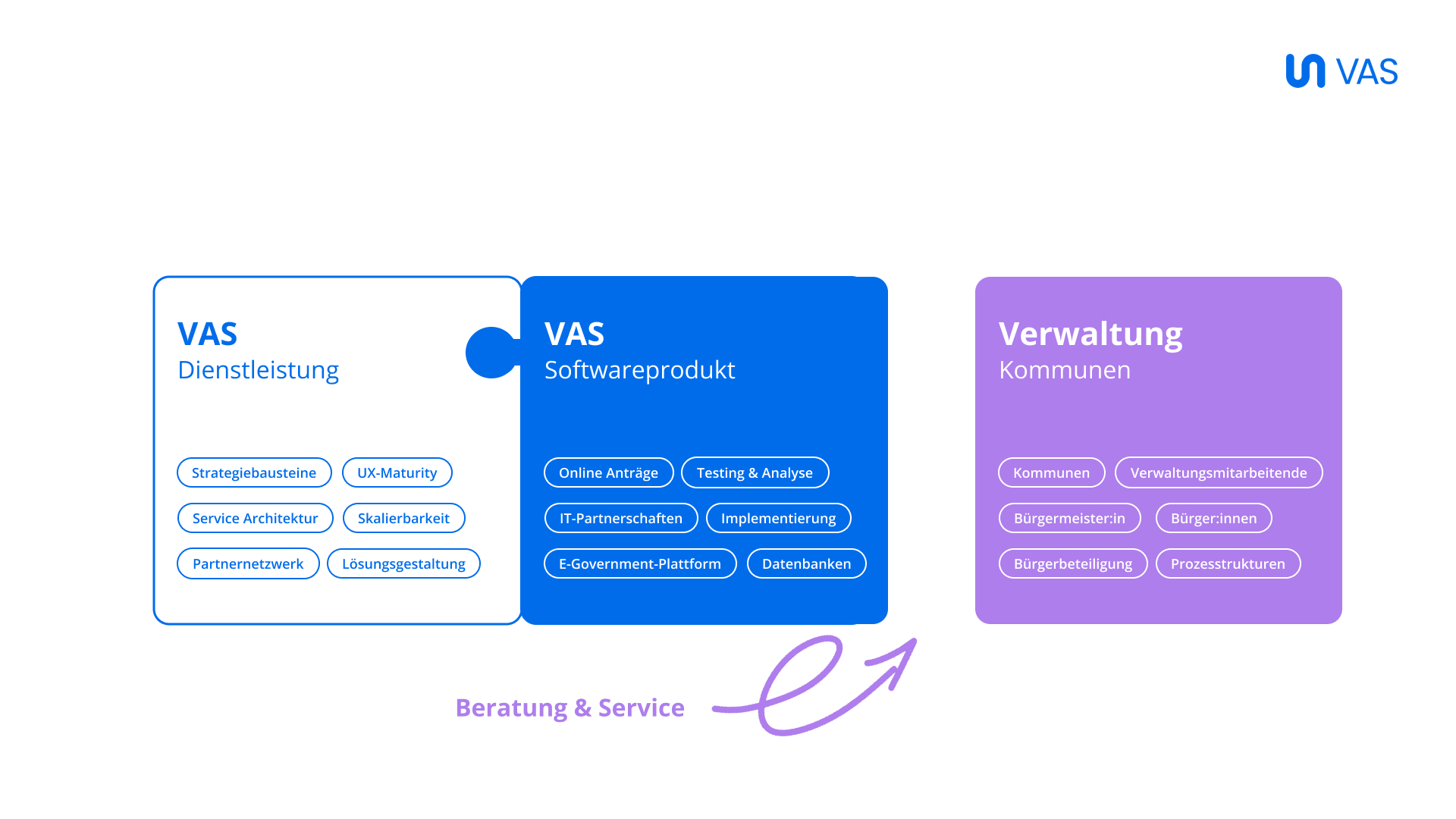 Das Ziel von VAS ist es, durch Innovation und eine menschenzentrierte Herangehensweise die öffentliche Verwaltung zu transformieren und den Bürgerinnen und Bürger einen besseren, effizienteren Service zu bieten.