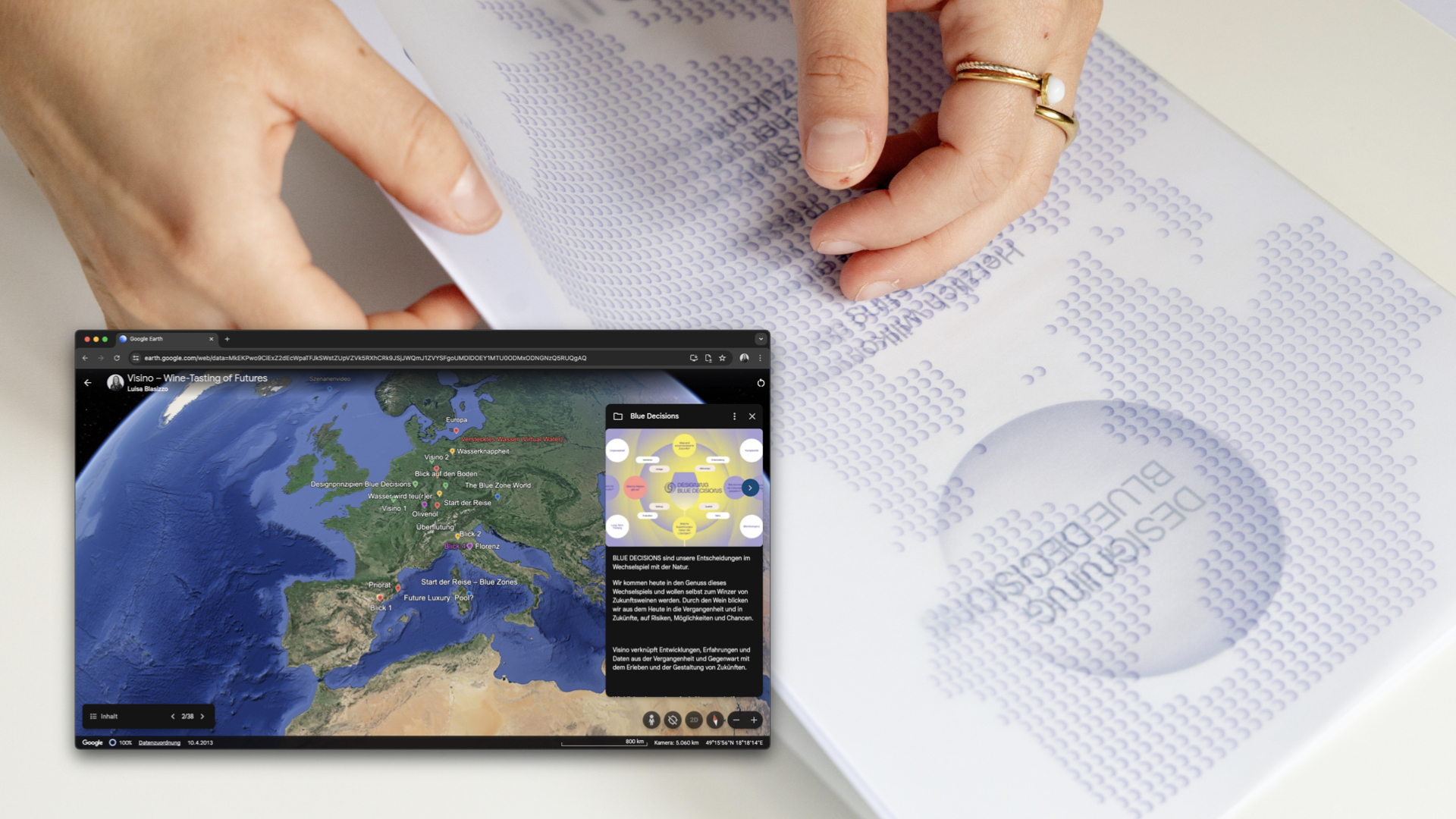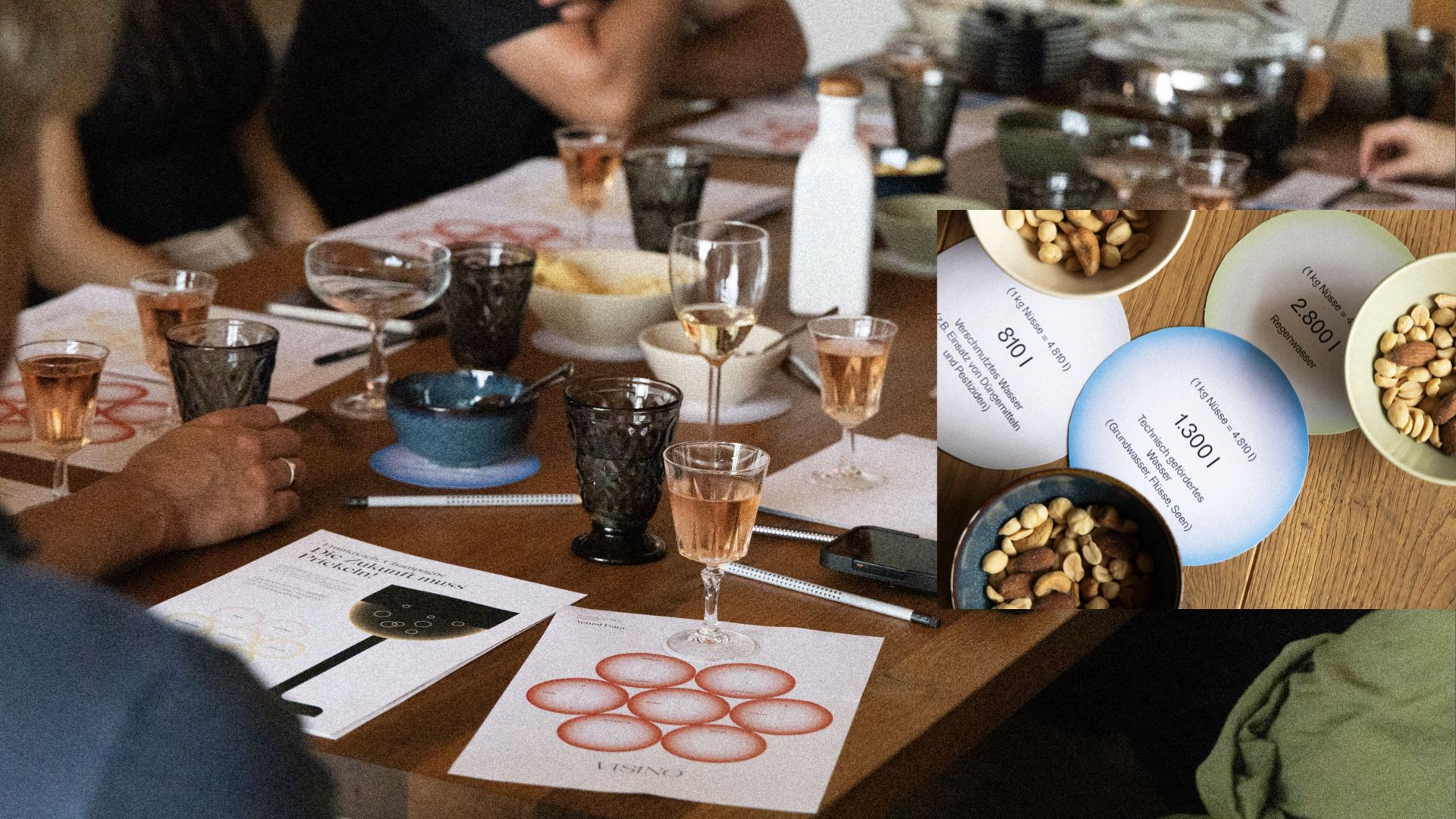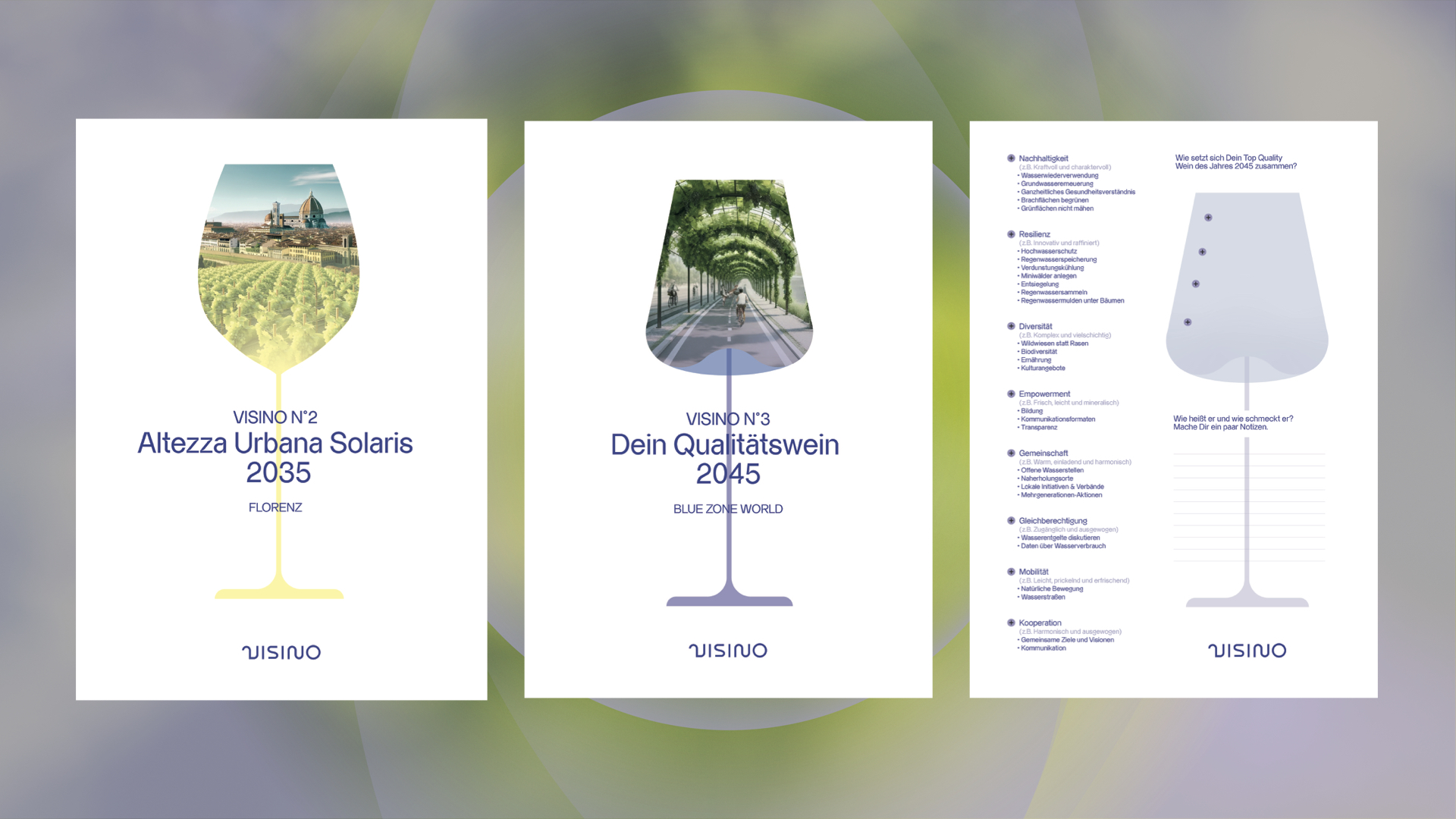 Das Masterprojekt „Visino (Vino Vision) – Designing Blue Decisions“ ist die Entwicklung einer transformativen Methodik in Form einer interaktiven Experience „Wine-Tasting of Water Futures“.
