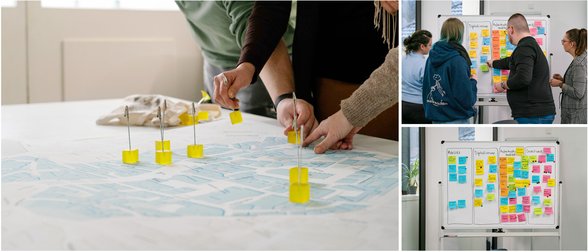 Abschließend ist zu betonen, dass jede Stadt individuelle Stärken und Schwächen aufweist. Mit den oben genannten Beteiligungsmethoden zeigen wir, wie alle Bewohner und innerstädtischen Akteure für eine spielerische Beteiligung gewonnen und in den Gestaltungsprozess einbezogen werden können. Auf diese Weise lassen sich die individuellen Stärken und Schwächen erörtern und anschließend ortspezifische Handlungsfelder ableiten.